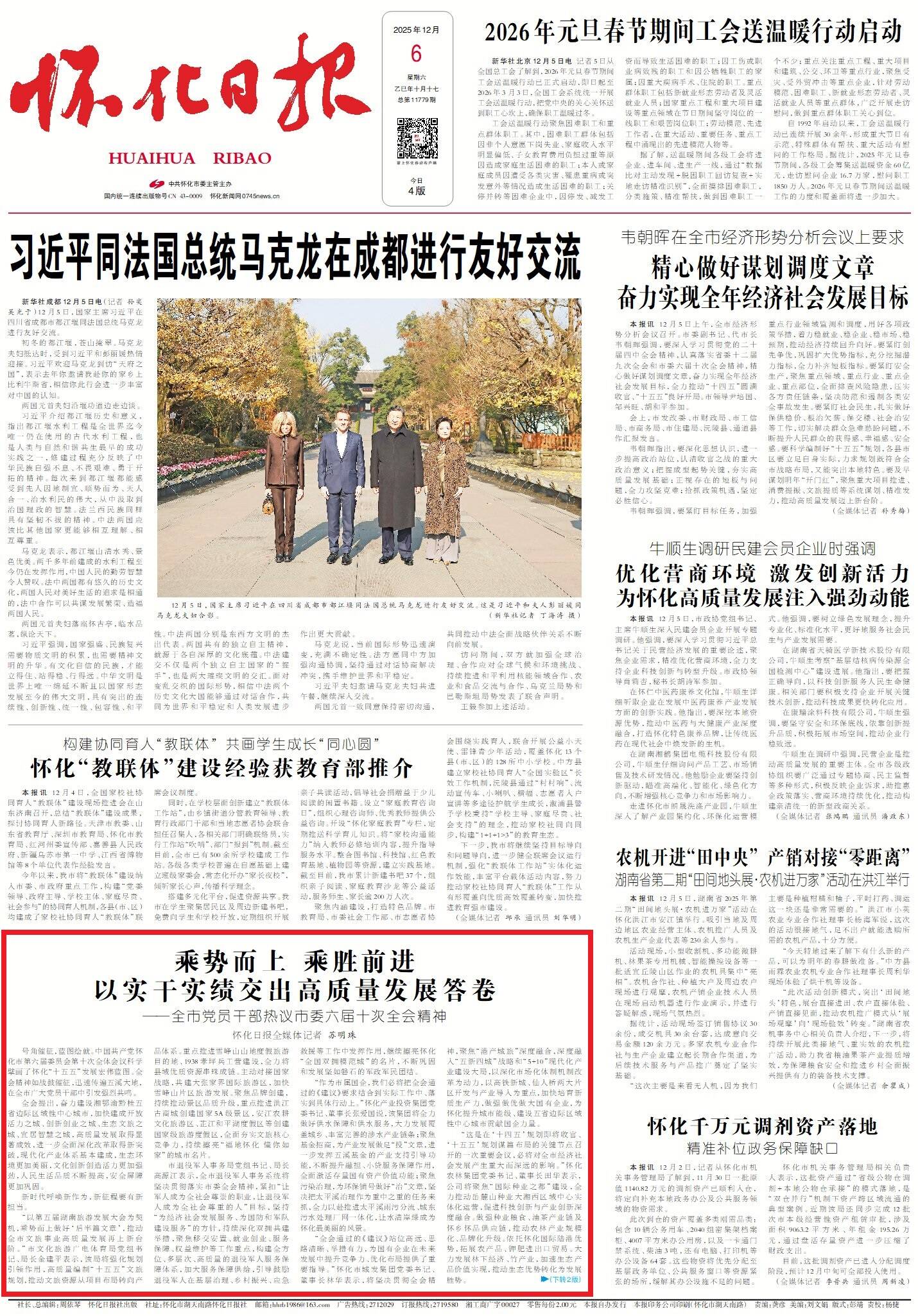 “这是在‘十四五’规划即将收官、‘十五五’规划谋篇布局的关键节点召开的一次重要会议,必将对全市经济社会发展产生重大而深远的影响。”怀化农林集团党委书记、董事长田华表示,公司将聚焦“国际种业之都”建设,全力推动岳麓山种业大湘西区域中心实体化运营,促进科技创新与产业创新深度融合。做强种业粮食、油茶产业链及怀乡怀品供应链,推动农林产业规模化、品牌化升级。依托怀化国际陆港优势,拓展农产品、钾肥进出口贸易。大力发展林下经济、竹产业,加速生态产品价值实现,推动生态优势转化为发展胜势。同步加快主城区四大农贸市场智慧化提质改造,协同推进乡村振兴与生态保护,切实保障和改善民生,在全市发展大局中展现农林集团的担当作为。